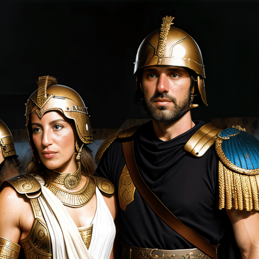 “Héros et guerriers” : costumes virtuels de hoplites, boucliers, casques et armures.